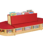 The functionality of the Arcadia is further enhanced by its high-capacity integrated storage. Featuring eight deep-set storage cubbies—four on each side—complete with translucent organisation bins, it provides a total solution for a clutter-free environment. This focus on order is a key pillar of child independence; when every sensory toy, building block, and specimen has a dedicated home, the child develops the stewardship and organisational skills required for genuine autonomy. The back-to-back seating configuration facilitates complex peer-to-peer social dynamics, allowing for both collaborative “story-time” and focused, individual contemplation. Whether used in a boutique Australian educational space or a private residential nursery, the Arcadia provides the social and structural framework required for a high-level culture of discovery and shared literacy.