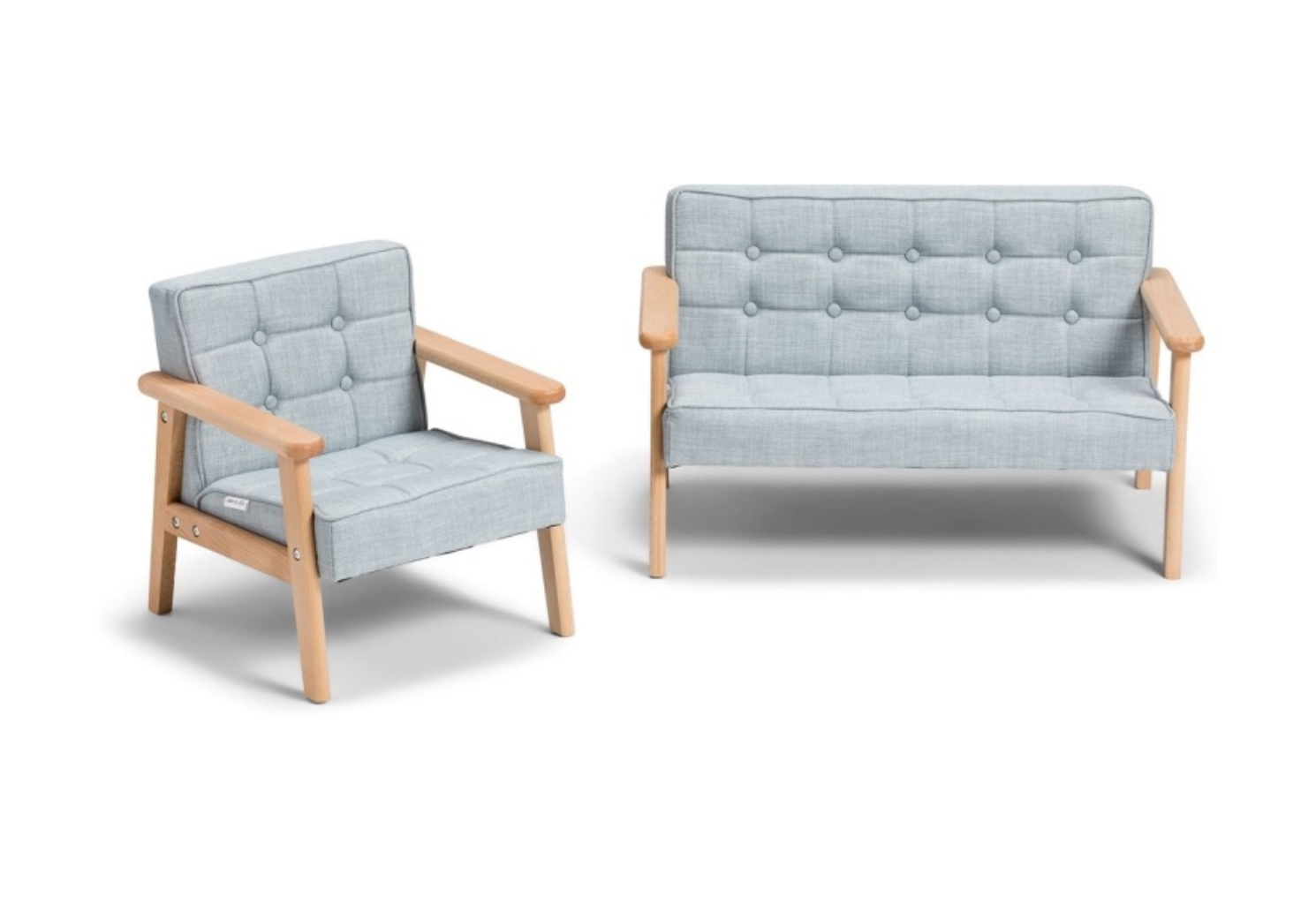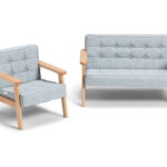 The Celeste lounge duo is a premier expression of sophisticated Australian living, meticulously designed to bring a “grown-up” level of interior refinement to the contemporary nursery. Departing from the simplistic forms of standard children’s seating, the Celeste pays homage to mid-century modernism through its distinctive button-tufted backrest and elegant, tapered timber legs. Whether positioned in a sun-drenched, open-plan residence in Sydney’s Eastern Suburbs or as an accent piece in a minimalist Melbourne penthouse, this suite offers a visual lightness and architectural beauty that is usually reserved for bespoke adult furniture. The sky-blue upholstery provides a tranquil “Coastal-Luxe” energy, reflecting the clear horizons of the Australian coastline and inviting a sense of airy calm into a curated sanctuary. This choice of a muted, ethereal colour palette ensures that the Celeste integrates seamlessly with high-end décor, from neutral wool rugs to bespoke timber shelving, maintaining the aesthetic harmony of your home.
