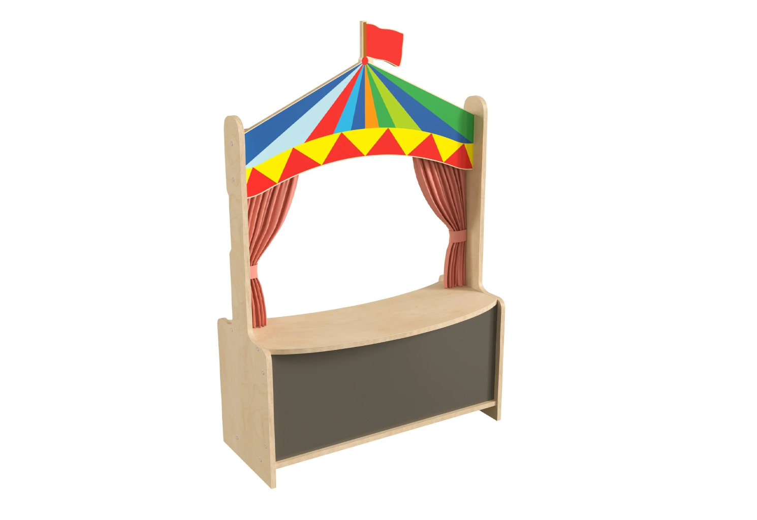 At Maison Clair de Lune, we believe the “prepared environment” should extend to the social arts. The Cirque is a physical manifestation of this commitment, offering a dedicated platform for theatrical exploration and social literacy. The integrated chalkboard gallery at the base allows young performers to announce their latest productions, fostering early literacy and graphic expression. Role-play and performance are fundamental in early childhood development, as they allow children to model social interactions and master the art of communication. The open-back design ensures that the unit remains a collaborative hub, allowing peers to gather simultaneously to engage in complex, multi-layered narratives and shared discovery.