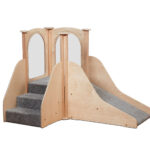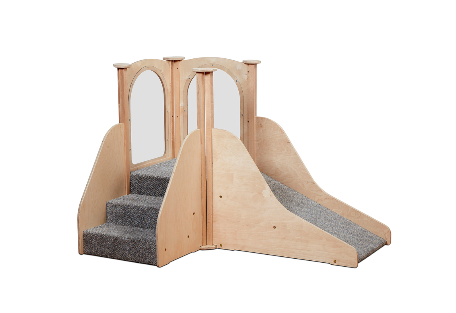 Central to the Montessori method is the creation of a workspace that respects the child’s natural drive for self-perfection. The L’Esplanade is a masterfully prepared environment for “practical life” gross motor exercises. By providing a safe, perfectly scaled staircase and slide, we remove the barriers to independence, allowing toddlers to master the mechanics of elevation, balance, and descent at their own pace. This self-directed activity builds profound self-confidence and proprioceptive awareness. In a Montessori-inspired home, this gym acts as a “yes” space—a dedicated sanctuary where the child is the master of their trajectory, fostering the deep concentration and physical flow essential for healthy neurological development.