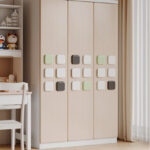 At Maison Clair de Lune, we believe that the objects surrounding a child’s daily life should seamlessly blend structural integrity with spirited imagination. The L’Atelier Mosaïque Tri-Door Silhouette is a definitive expression of this philosophy, bridging the gap between a durable kids wardrobe and a high-end architectural masterpiece. Designed as a permanent centerpiece for the modern interior, its organic wood-grain doors and rhythmic grid of soft green, white, and charcoal nodes mirror the light-filled volumes of contemporary coastal design. It provides a grounded energy that maintains spatial harmony while inviting children into a world of curated, tactile order.
