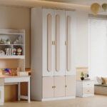 | 3-Door Wardrobe | 1200 (W) x 605 (D) x 2000 (H) | Spacious wardrobe with long oval timber feature panels and lower storage. |