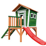 • Aesthetic Poise: The forest-green and timber palette ensures the playhouse sits in perfect harmony with natural stone, timber decking, and minimalist landscaping.