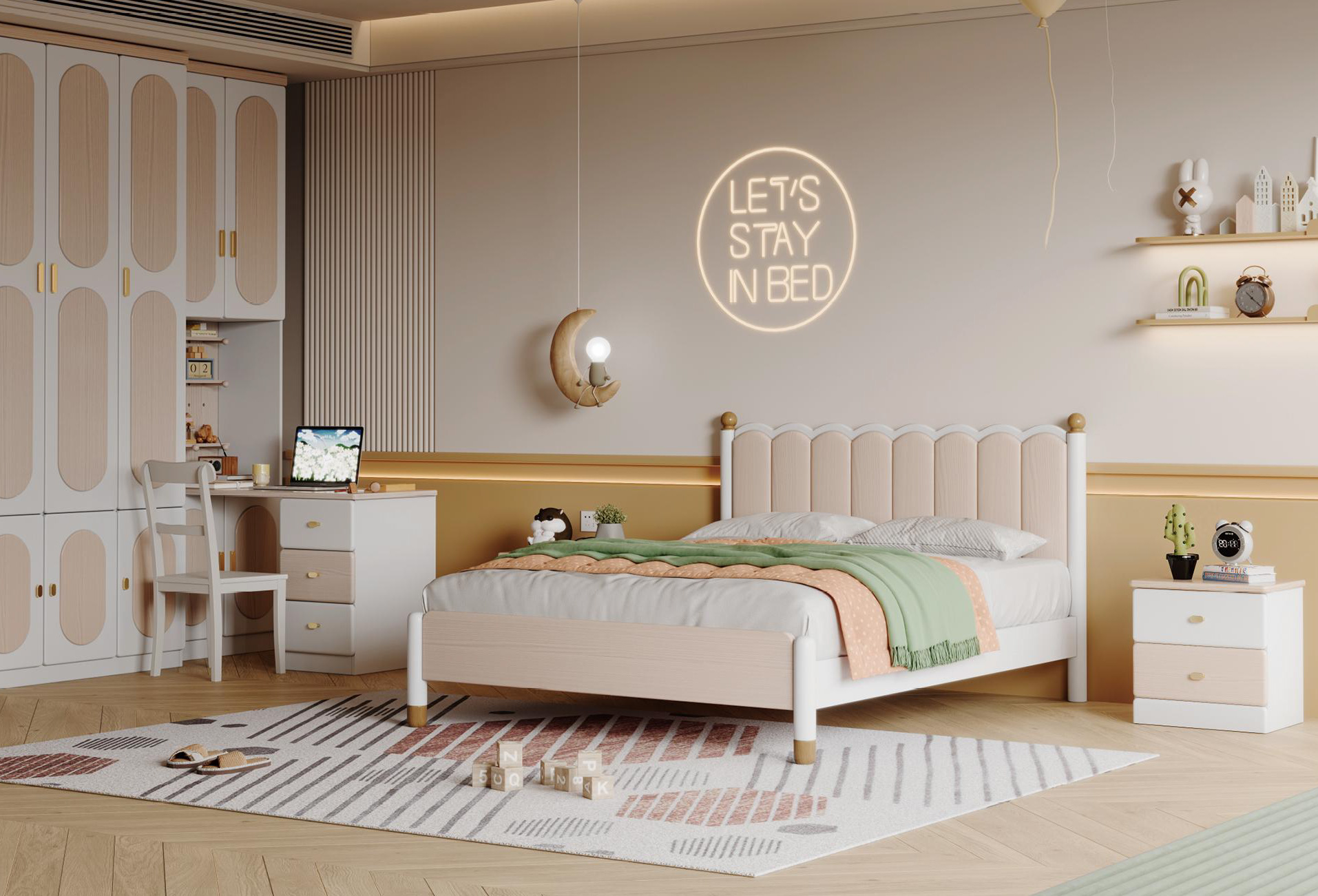 • Environmental Autonomy: Featuring a combination of high-access cabinetry for long-term storage and a multi-drawer pedestal for daily essentials, the silhouette empowers the child to manage their own learning resources with absolute confidence and independence.