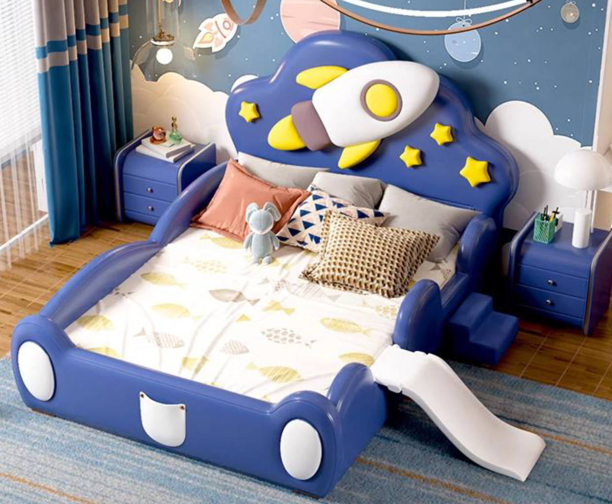 Luxury Blue Rocket Space Toddler Bed with Slide