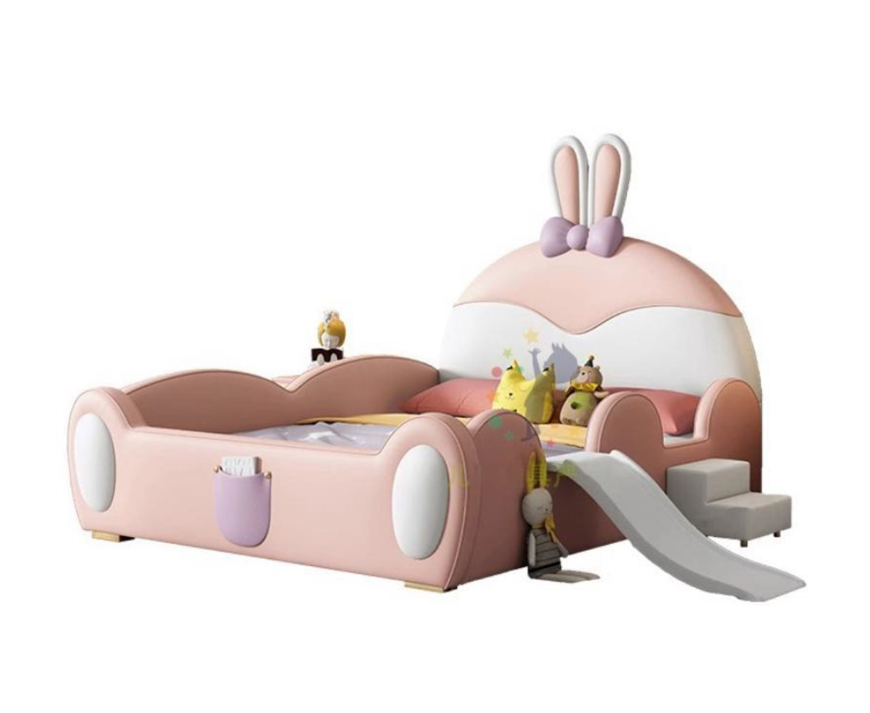 Transitioning your precious child from the familiar, enclosed security of a nursery cot to their very first ‘big kid’ bed is a monumental developmental milestone, marking a beautiful new chapter of growing independence. At Maison Clair De Lune, we firmly believe this significant step should be celebrated with a piece of furniture that not only guarantees an unparalleled level of nighttime safety but also actively sparks pure joy, invites daily imaginative play, and beautifully elevates your home’s aesthetic. We are absolutely thrilled to introduce a highly sophisticated, delightfully playful addition to our exclusive ‘Enchanted Beds’ collection: the Premium Pink Bunny Toddler Bed with Slide and Steps. Meticulously conceptualised and beautifully crafted for vibrant, growing children aged 3 to 6 years old, this extraordinary bed seamlessly merges the serene elegance of modern luxury interior design with the thrilling fun of a personalized indoor playground.