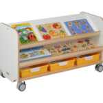 The functional versatility of the Plexus is further enhanced by its integrated sensory storage system. Featuring three vibrant, high-density pull-out trays at the base, the unit provides a stable home for loose puzzle pieces, tactile manipulatives, or art supplies. This focus on order is a vital component of independence; when every tool has a dedicated, accessible home, the child naturally develops the organisational skills and stewardship required for genuine autonomy. In a shared environment, the Plexus serves as a “social discovery” hub, where children can gather to collaborate on problem-solving tasks or share a quiet moment of literacy. The ergonomic height is carefully calibrated to align with the physical needs of early learners, ensuring they can reach every level of the station without adult assistance. It is a piece that understands the dynamic nature of childhood, providing a durable and inspiring centre for daily rituals of growth.