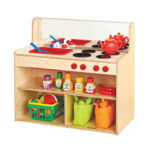 The functional versatility of the Savor makes it an indispensable asset for boutique Australian educational spaces and high-end residential playrooms. The unit features a high-capacity lower grid of three discovery zones—including a deep-set central shelf and two flanking cubbies—providing a stable home for curated culinary tools and sensory baskets. This focus on organisation is a vital component of independence; a child who can easily access and tidy their own materials develops a sense of pride and connection to their environment. The ergonomic 79cm height is carefully calibrated to ensure that the worktop and interactive dials are accessible to early explorers, promoting physical confidence and focused concentration from the earliest age. In a shared playroom, the Savor serves as a “collaborative hub,” where siblings or peers can gather simultaneously to engage in complex social scripts and shared discovery. It is an investment in the intellectual architecture of your home, providing a reliable foundation for your family’s most precious developmental moments.