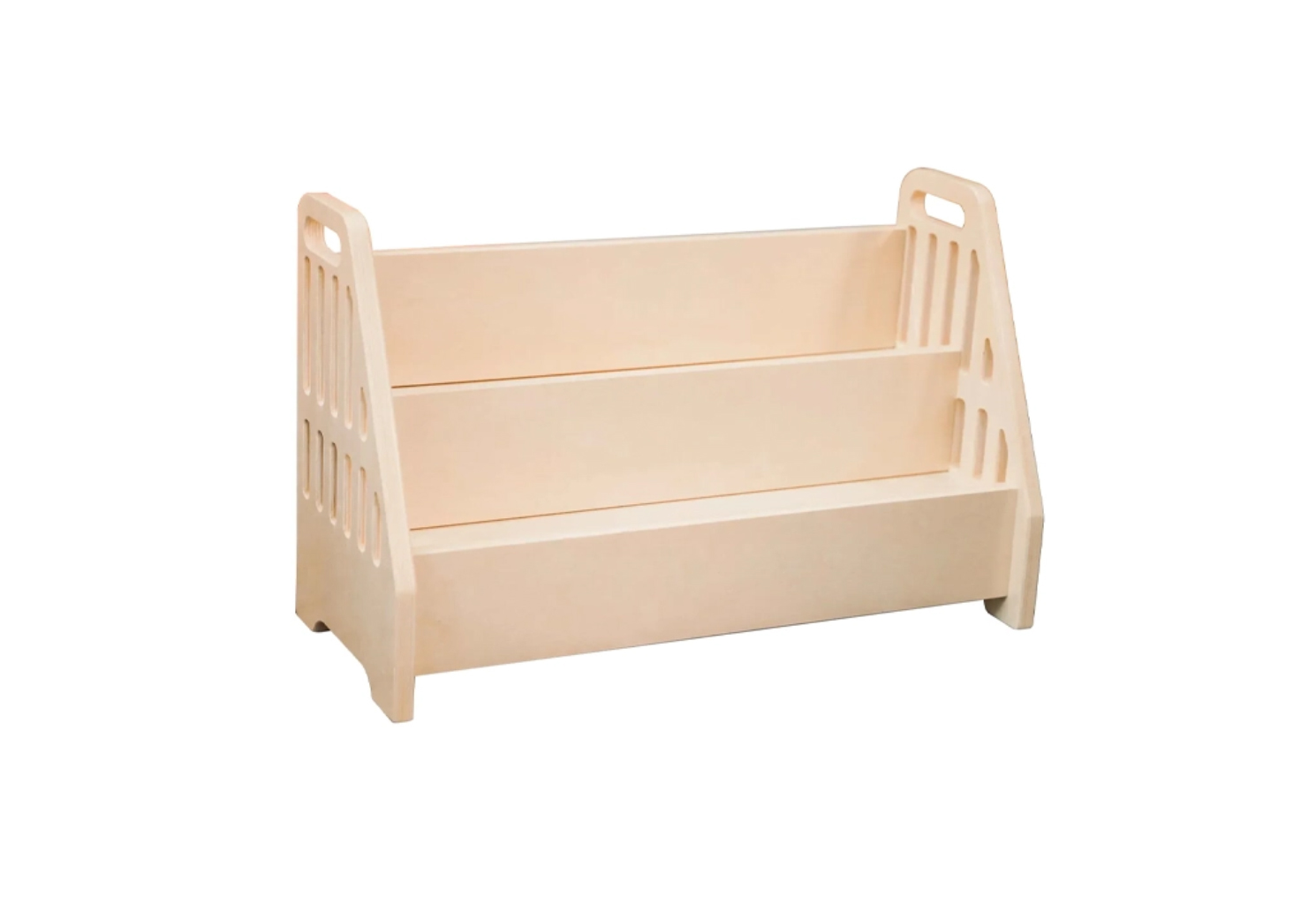 The Scribe bookshelf is a masterclass in accessible literacy, combining an elegant slatted silhouette with a multi-tiered forward-facing display. Crafted from premium natural timber, it provides a sophisticated architectural anchor for the modern Australian nursery, empowering early readers through self-directed discovery and visual choice.