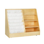 At Maison Clair de Lune, our primary mission is fostering child independence by providing a “prepared environment” that respects the child’s work. The Script is a physical manifestation of this philosophy, engineered to be a self-contained hub for literary and sensory discovery. The dual-zone configuration supports two distinct types of engagement: the tiered slings are designed for the visual selection of favourite stories—allowing pre-readers to identify books by their covers—while the open shelving provides a stable home for larger hardcover volumes, sensory bins, or specialized learning manipulatives. This multi-level approach encourages a child to lead their own discovery, mastering the art of organization and choice without adult intervention. By providing a dedicated space where every item has a logical home, we promote the stewardship and agency that are vital in the early years.