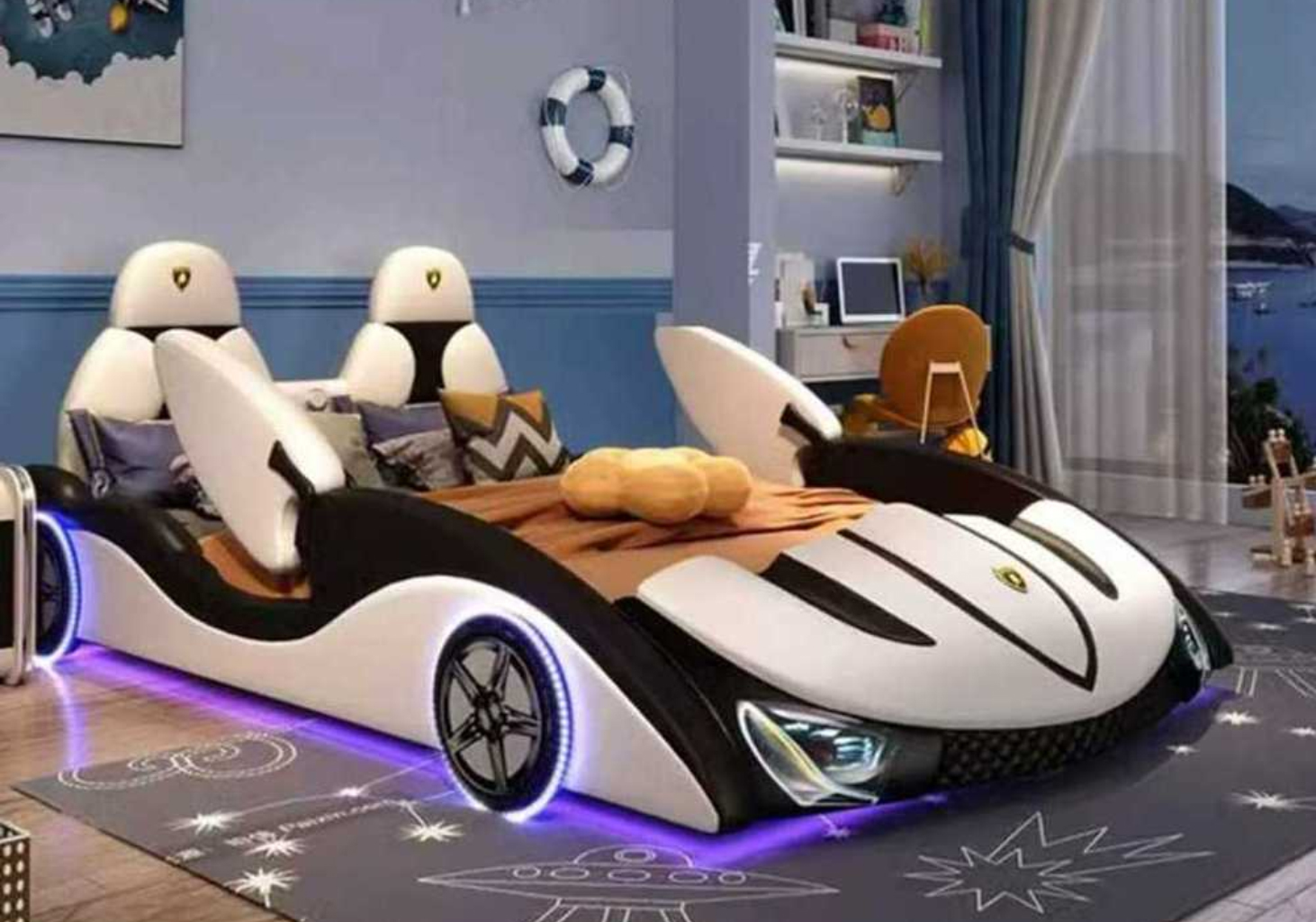 Welcome to the absolute frontier of luxury children’s bedroom design. Available exclusively through Maison Clair De Lune, the Aventino Stealth Scissor Door Hypercar Bed is a breathtaking, high-performance statement piece engineered to completely transform your child’s sleep space into a futuristic sanctuary of speed, interactive technology, and unparalleled comfort. Moving far beyond the uninspiring, rigid plastics of traditional kids’ furniture, this extraordinary premium bed boasts an aggressively styled, heavily padded aerodynamic silhouette that perfectly mirrors the sweeping, sharp lines of the world’s most elite concept hypercars. Finished in a spectacularly crisp white, beautifully contrasted by sweeping deep black accents and an aggressively pointed front nose, this striking piece instantly becomes the magnificent centrepiece of any modern Australian bedroom. It is meticulously designed for discerning families who refuse to compromise on either high-end interior styling or the enchanting magic that a beautifully crafted novelty bed brings to a child’s formative early years.