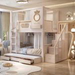 At Maison Clair De Lune, we believe your child’s bedroom should be an enchanting, safe haven that effortlessly matches the sophisticated interior of your modern Australian home. The Kensington Royal Crown Canopy Bunk Bed completely reimagines children’s furniture. It moves away from standard, open-frame bunks to create an incredible, private sleep sanctuary that feels like a boutique hotel or a royal pavilion.