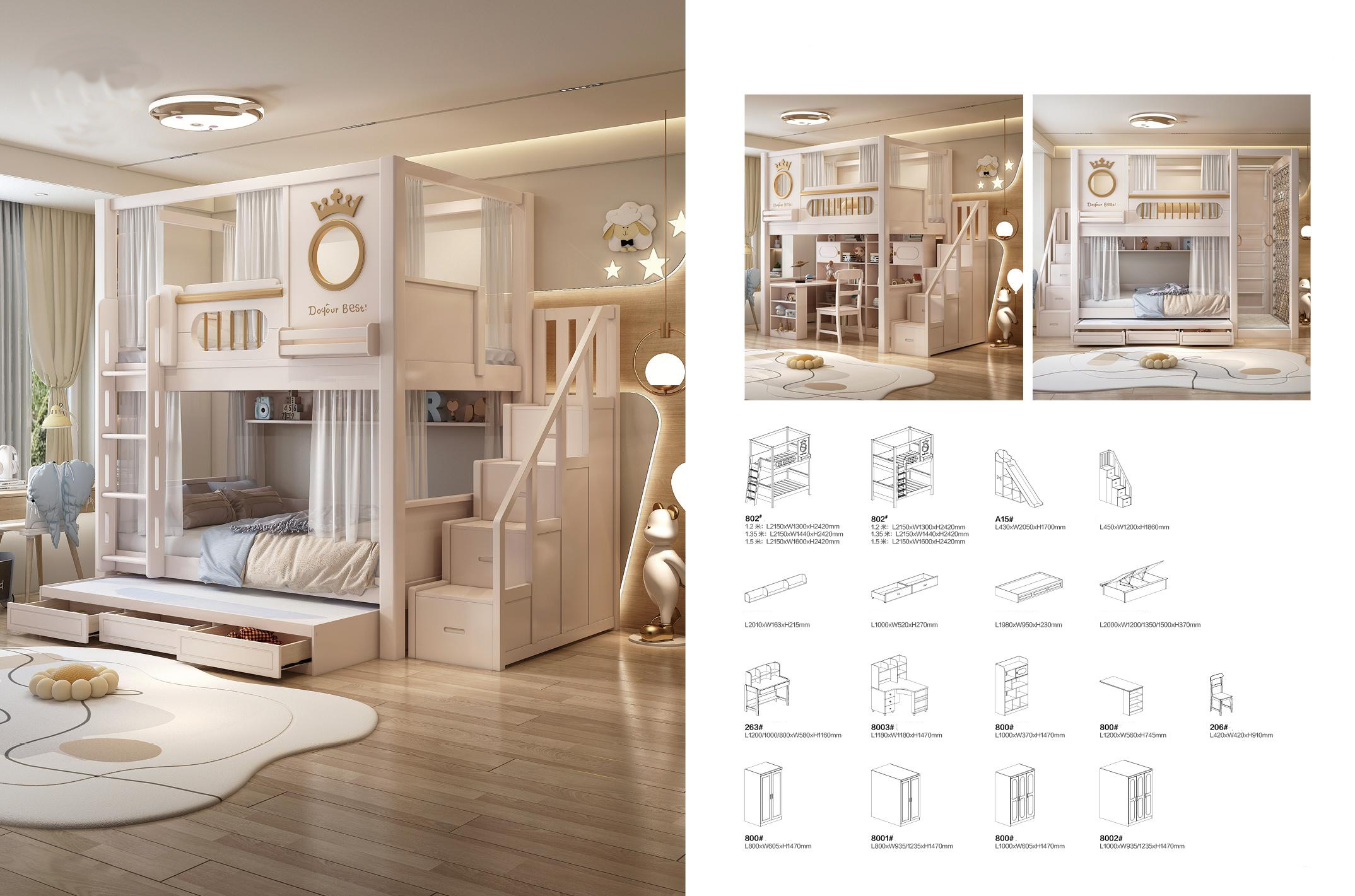 Standing as a spectacular architectural centrepiece, this suite functions as a private reading nook, an imaginative play space, and a highly secure sleep environment. Finished in a timeless palette of Warm White with elegant Metallic Gold accents, it is an heirloom investment for design-conscious parents.