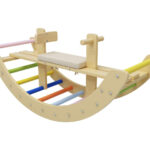 Materiality is the hallmark of luxury at Maison Clair de Lune. The L’Atelier Horizon Grande is constructed from premium, sustainably sourced timbers that reflect the organic beauty of the Australian landscape—from the sun-bleached sands of our beaches to the warm, raw textures of the hinterland. The natural wood grain of the side panels is masterfully preserved beneath a bespoke architectural satin finish, providing a tactile grounding that is gentle for small hands. The rhythmic sequence of multi-coloured rungs is treated with non-toxic, low-VOC coatings, ensuring a healthy indoor environment for the most sensitive members of your family while adhering to the highest Australian safety standards. This commitment to premium materials ensures that the rocking board is not only a durable generational heirloom but also an eco-conscious choice for the modern home.