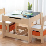Central to the Montessori method is the belief that an orderly environment fosters an orderly mind. The L’Horizon Atelier is designed to be the physical manifestation of this principle. By providing a dedicated workspace with integrated, accessible storage, we empower the child to take full ownership of their creative process. The two ergonomic chairs feature integrated, under-seat storage bins in a sophisticated terracotta hue, providing a subtle, earthy contrast to the natural timber frame. These bins are positioned at a height that allows the child to independently retrieve and stow away their materials—paints, manipulative puzzles, or botanical specimens—without adult intervention. This self-directed access is the cornerstone of developing “practical life” skills, transforming the act of tidying into a rewarding exercise in autonomy and environmental respect.