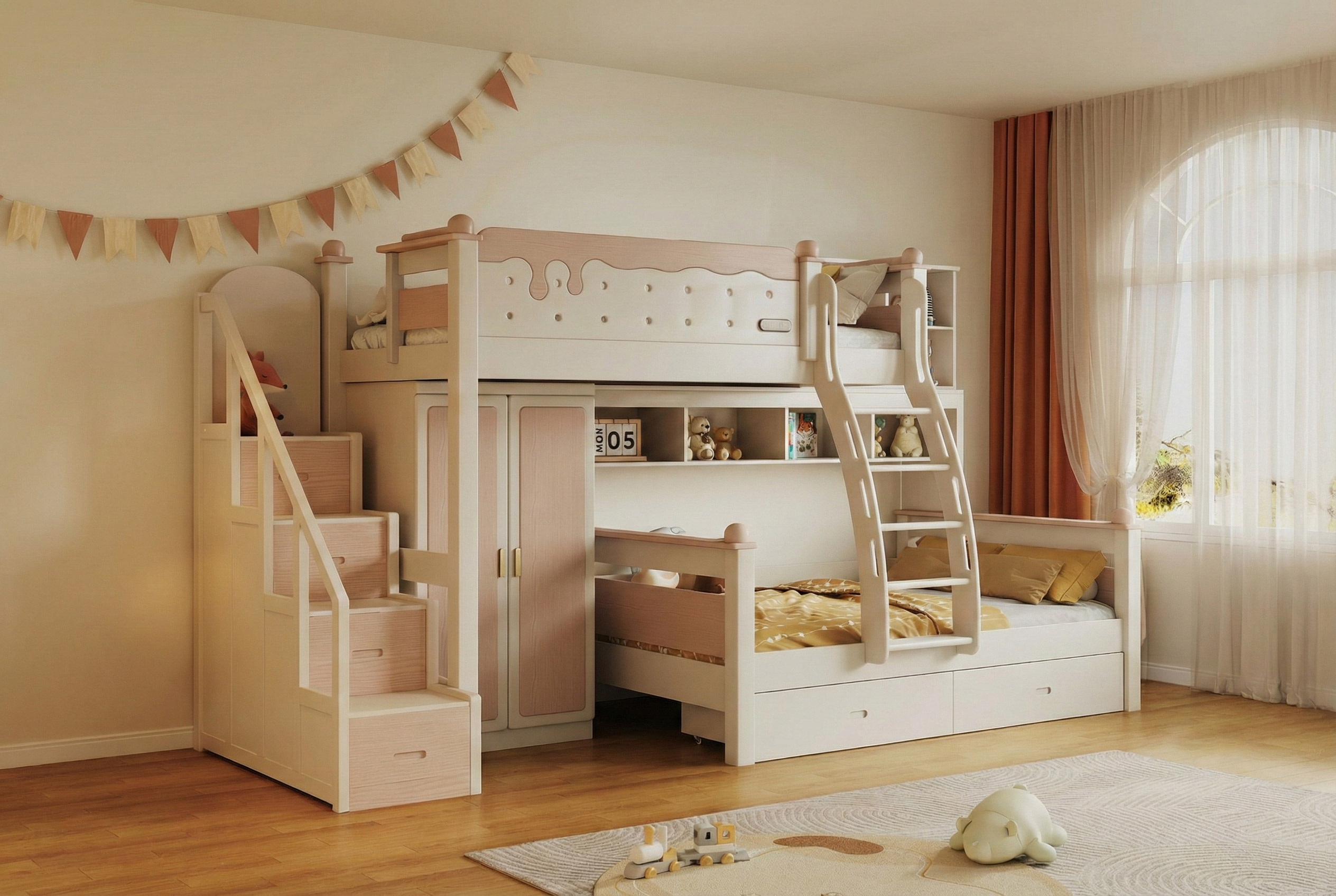 At Maison Clair de Lune, we understand that a child’s bedroom must be a multi-functional sanctuary—a place for restful sleep, imaginative play, and immense storage. The Lyra Blush Cloud-Drip Modular Loft Suite tackles all these needs beautifully, wrapping heavy-duty engineering in a delightfully playful, Scandinavian-inspired aesthetic.