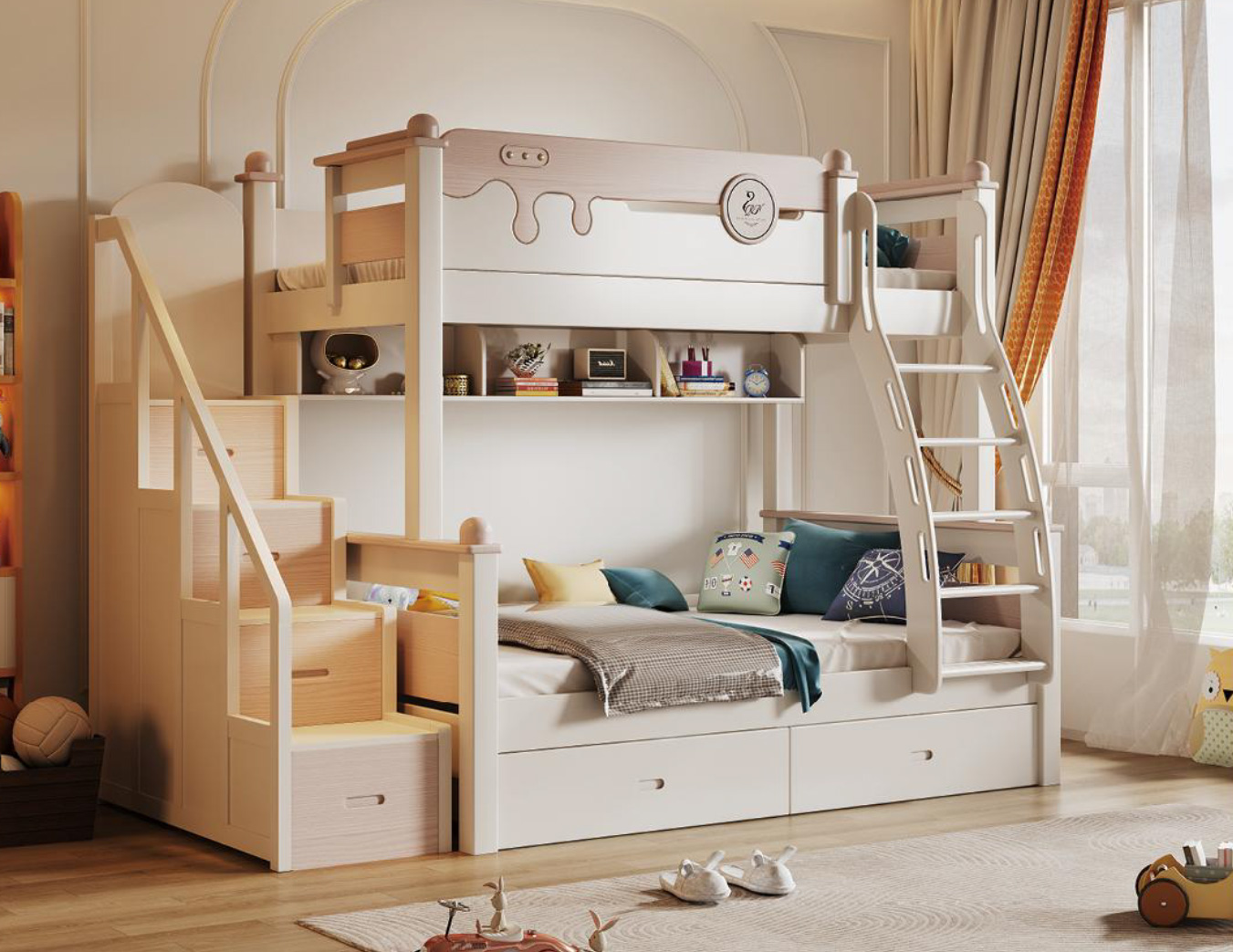 At Maison Clair de Lune, we believe children’s furniture should spark joy and imagination while remaining an elegant extension of your home’s interior styling. The Nimbus Cloud-Edge Modular Bunk Suite captures this philosophy perfectly. It infuses a subtle, whimsical charm into a highly functional, Scandinavian-inspired silhouette.