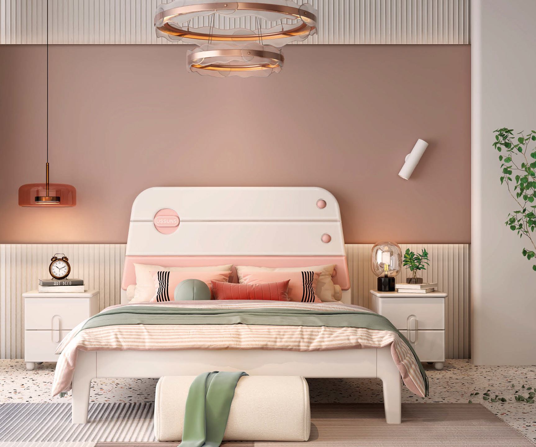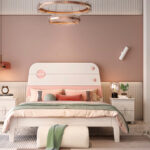 Finished in a light-enhancing palette of Warm White and Soft Pink, this breathtaking bed serves as a calming, room-defining centrepiece. Its minimalist Scandinavian silhouette ensures the space remains timeless, while the playful circular accents and horizontal pink band add a touch of boutique charm that will grow with your child.