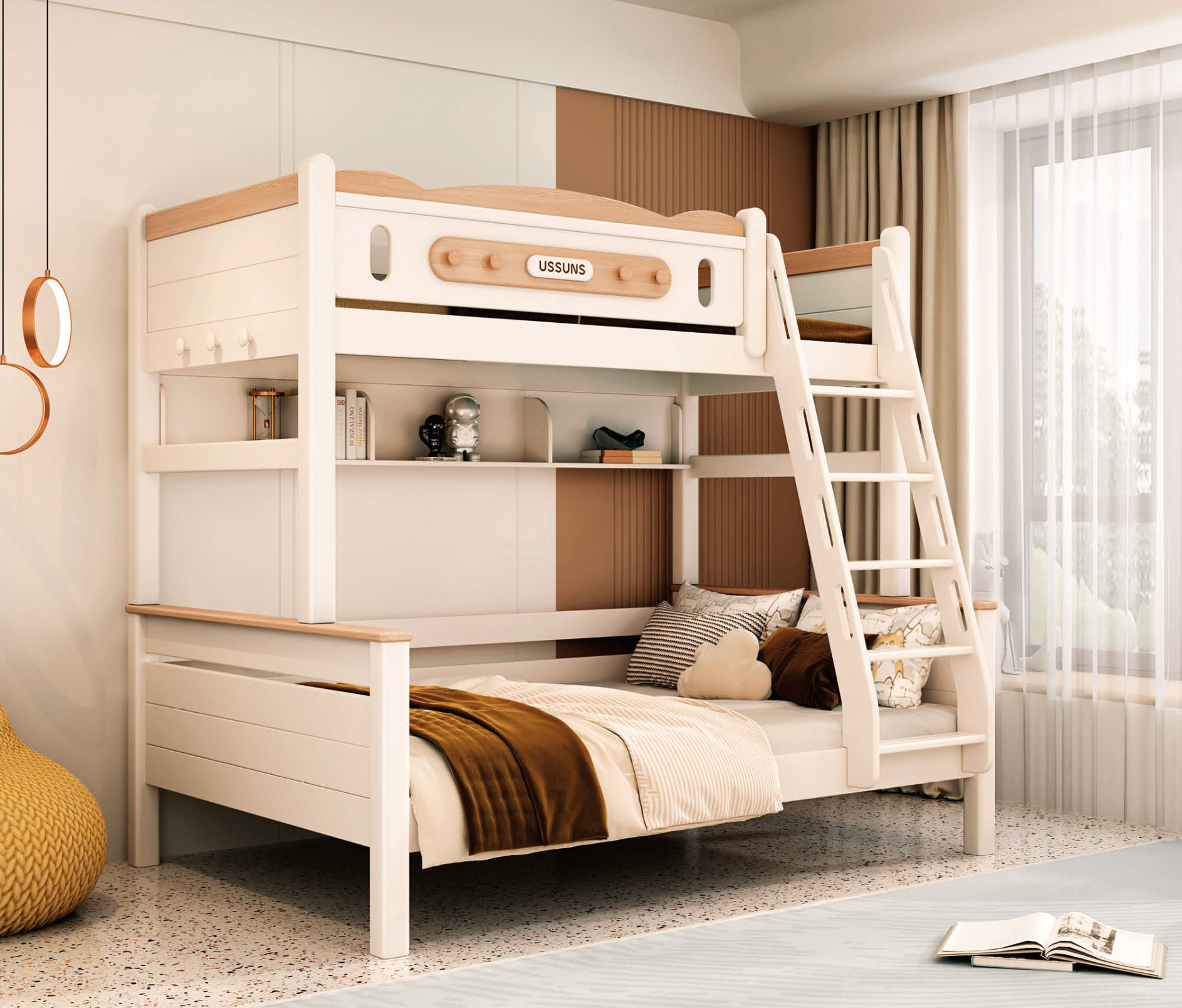 At Maison Clair de Lune, we believe that high-end children’s furniture should be a soulful harbor that encourages both restful sanctuary and academic curiosity. The Seraphina Minimalist Scandi Bunk Bed is built on the philosophy of creating a “heartfelt, loving growth space”. Moving away from over-ornamentation, this bed utilizes soft architectural curves and the natural warmth of timber to create an environment that feels both contemporary and incredibly inviting.