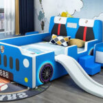 What truly sets the Stuttgart Safari apart from any other luxury bed on the market is its phenomenal dedication to interactive morning and evening routines. This incredible 4×4 frame comes fully equipped with a sturdy, gently sloped white slide attached directly to the side panel, completely transforming the way your child greets the day. Waking up is no longer a chore, but an eagerly anticipated ride. To complement the slide, the bed features a set of matching, heavily padded blue climbing steps, allowing toddlers and young children to confidently and safely navigate their way into the driver’s seat each night. This brilliant combination of climb-and-slide functionality empowers your child, fostering exceptional spatial awareness, gross motor skills, and a profound, proud sense of independence in their personal space.