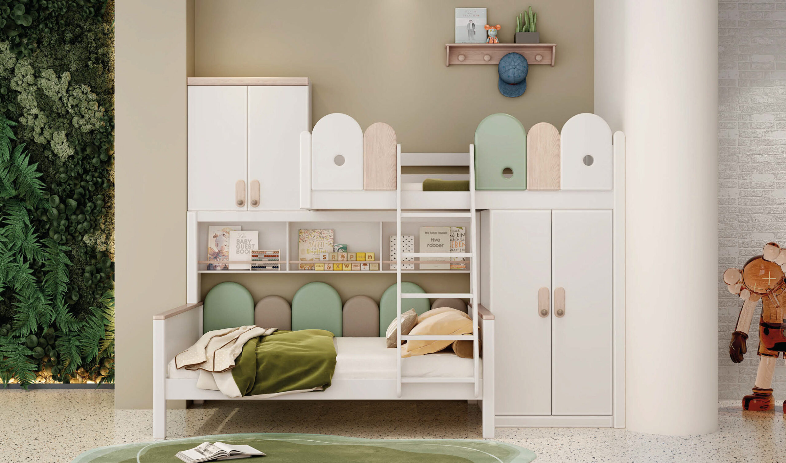 Finished in a light-enhancing palette of Warm White and Sage Green with Natural Timber accents, this breathtaking suite serves as a spectacular room-defining centrepiece. It provides a scientifically supported sleep environment that prioritizes your child’s well-being and space efficiency.