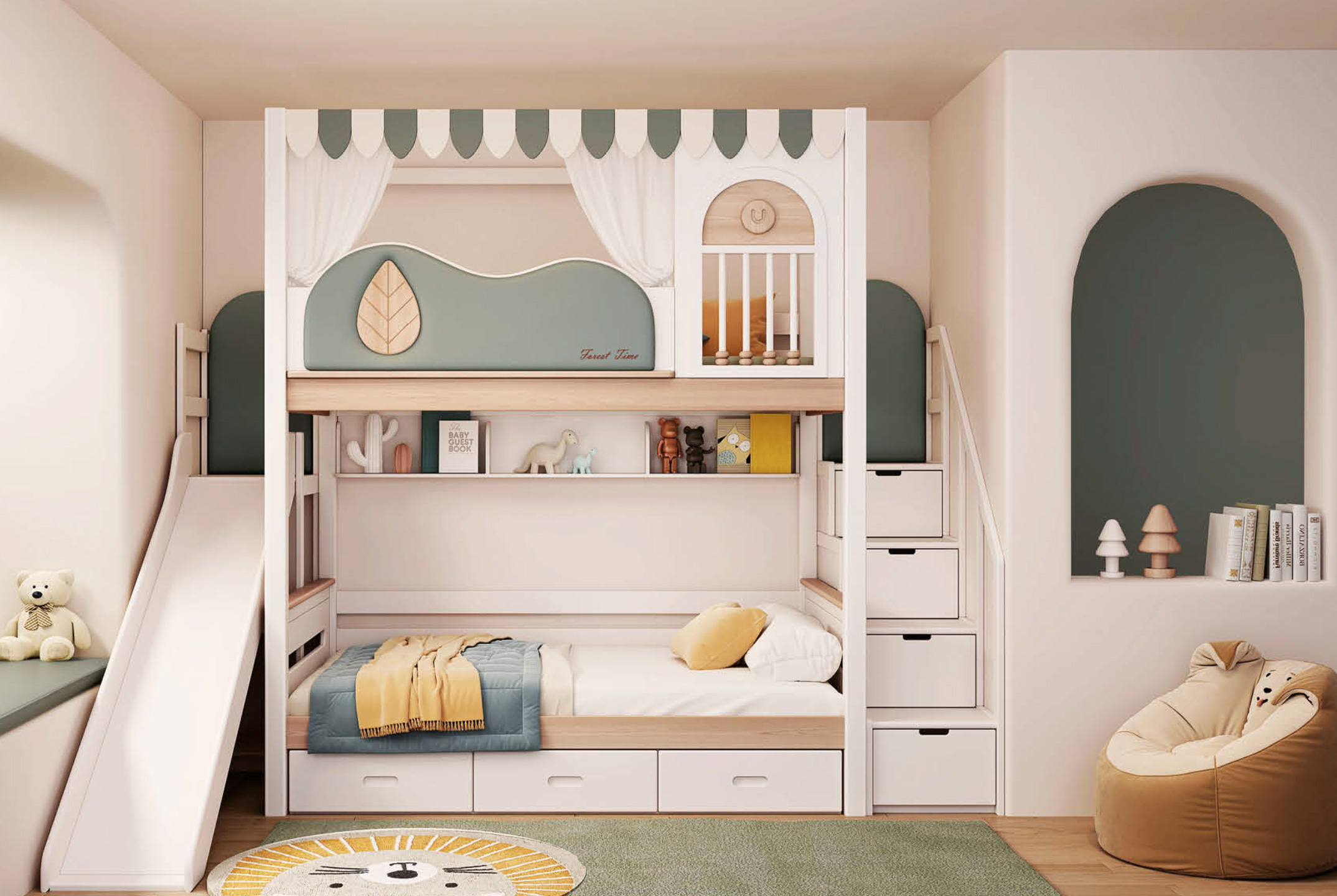 At Maison Clair de Lune, we believe that high-end children’s furniture should be a soulful harbor for both creative play and restful sanctuary. The Willow Forest Adventure Bunk & Slide Suite is the pinnacle of this philosophy, providing a structured, nature-inspired environment that encourages imaginative “Forest Time” while maintaining a serene, organized bedroom.
